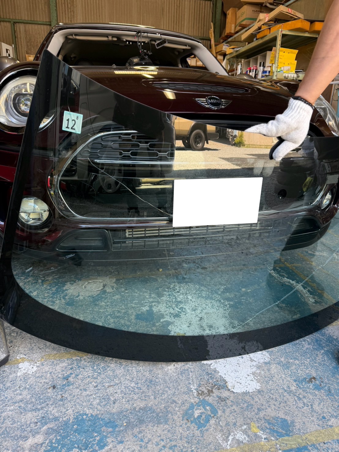 ミニクーパーのオーナー様より、走行中の飛び石によるフロントガラスのヒビ割れでご相談をいただきました。
